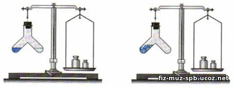 двухколенную пробирку с пробкой и проволочным держателем. С помощью прибора в 1891-1904 гг. ученый проверял изменение веса при химических реакциях. Отрицательный результат подтвердил закон сохранения массы веществ. В разные колена пробирки наливают, например, раствор щелочи и соляную кислоту; пробирку уравновешивают на весах. Поворотом пробирки смешивают вещества – после реакции равновесие сохраняется.