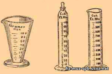 б) особенность большой мензурки: предел изме-рения 500 мл, а цена деления 0,5 мл, начало XX в.;