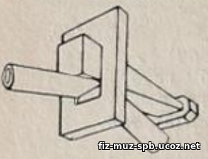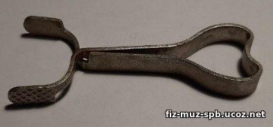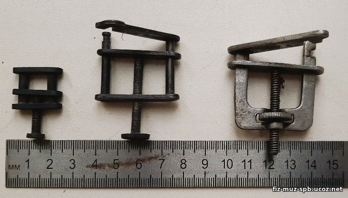 В первой половине 20 века учителя изготавливали самодельные зажимы, разработанные В.Н. Верховским. В деревянной прямоугольной плашке со стороной не более 4 см вырезывалось отверстие, в котором резиновая трубка зажималась деревянным клином. |