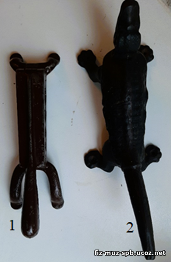На рисунке 1 показаны жомы/корковые прессы: 1 – переносной пресс стилизованный под животное. Длина 18 см, масса 0,8 кг. Завод №2, г.Киров.1956; 2 – стационарный пресс в форме крокодила. Длина 28 см, масса 2,4 кг. Эбергард «Изготовление и хранение оборудования и посуды». Первое десятилетие ХХ в., СПб, Берлин. У жомов, если смотреть сбоку, отверстия для обжима похожи по форме на чечевицу; размер последних одинаковый: 15 мм; 12 мм; 10 мм; 8 мм; 6 мм.