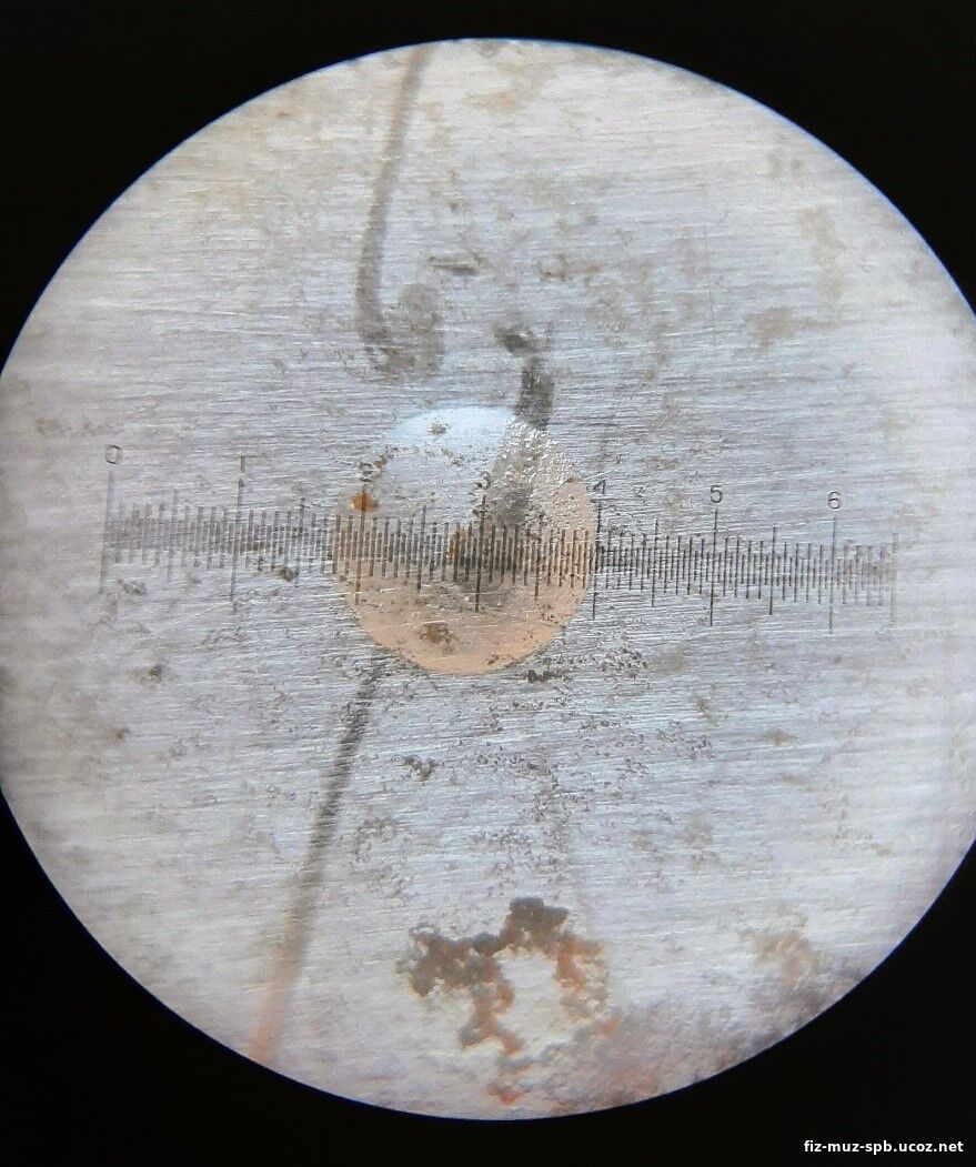 На рисунках 2 и 3 даны изображения, полученные при измерении диаметра лунок на стали и меди (для получения увеличенного изображения кликните по картинке). Запишите результаты измерений с учетом технических характеристик микроскопа. Объясните, почему по размеру отпечатка нельзя судить о твердости данного материала.