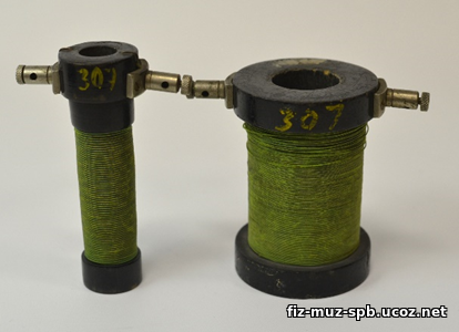Рисунок 2. Катушки намотаны на деревянные каркасы. Высота малой катушки 11 см, большой – 9 см. Сердечник не сохранился. 1930-ые. |